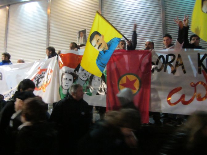 Sur le bord du parcours, représentants de la communauté kurde, dénonçant l’assassinat des 3 militantes kurdes, applaudis par la foule