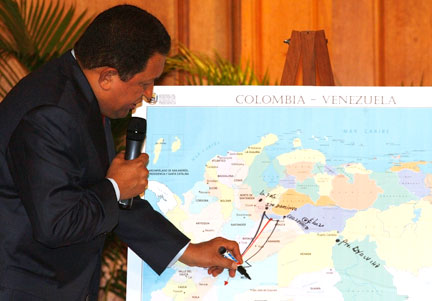 M. Chavez avait annoncé un peu plus tôt dans la journée qu’il n’attendait plus que la réponse de Bogota pour pouvoir exécuter le plan convenu avec les FARC. Pour récupérer les otages en territoire colombien, M. Chavez et les FARC ont mis au point un plan impliquant un cortège d’avions à bord desquels se trouveraient des représentants des gouvernements de plusieurs pays.