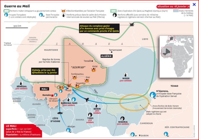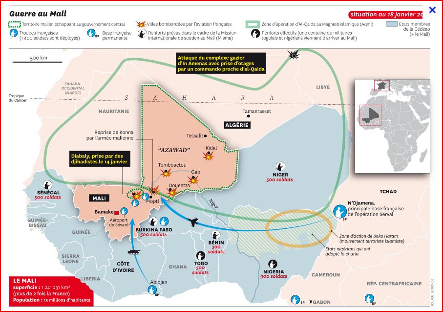 En effet, la France ancienne métropole malienne a envoyé des troupes qui interviennent dans les airs et au sol pour soit-disant chasser les islamistes.