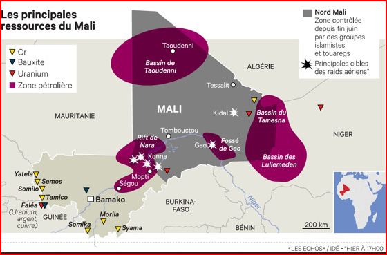 Quant au Mali, dégât collatéral de la guerre en Libye, il est riche en uranium, en or, pétrole, gaz et nappes aquifères !