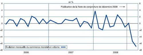 En ce qui concerne l’économie française, l’Insee a d’ailleurs revu à la baisse ses prévisions de manière draconienne. En décembre 2008, l’organisme faisait état d’une contraction du produit intérieur brut (PIB) de - 0,4 % au premier trimestre 2009 et de - 0,1 % au deuxième. Désormais, il table sur des reculs de -1,5 % au premier trimestre 2009 et de - 0,6 % au deuxième.