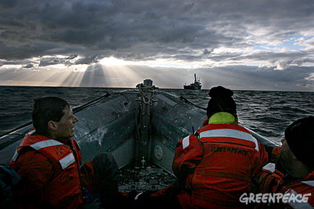 Le 17 mars 2008, des activistes de Greenpeace interceptent un cargo contenant une cargaison de bois supecte en provenance du Brésil.