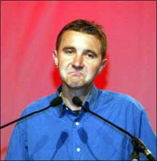 Le candidat de la LCR est Olivier Besancenot. Olivier Besancenot est jeune, la preuve ? il écoute du rap, il l’a dit sur Canal +. Autre indice des qualités révolutionnaires du jeune facteur : il est très télégénique. En effet les medias bourgeois, la presse pourrie aux ordres du grand capital, affectionnent particulièrement Olivier, puisqu’ Arlette a déjà beaucoup servi . Vous y voyez une contradiction ? erreur, il s’agit d’une stratégie de la LCR pour toucher le plus grand nombre. A moins qu’il ne s’agisse d’une stratégie de la bourgeoisie ? mais alors, quel peut être l’intérêt de la bourgeoisie à mettre ainsi en avant notre révolutionnaire ? Vraiment, je ne comprends pas…