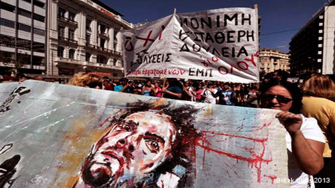 Les scenarii les plus étonnants circulent en ce moment à Athènes. Un pseudo-putsch (?) qui serait en préparation par des parachutistes réservistes, des élections partielles ou générales anticipées, provoquées par la démission probable et en bloc de l’ensemble du groupe parlementaire du mouvement néonazi et l’en passe. Depuis l’Eurocontrol à Bruxelles, Olli Rehn, admet publiquement que la Commission aurait déjà coopté avec le “gouvernement grec” la “libéralisation totale” des licenciements pour toute entreprise de plus de 150 salariés, quotidien “Avgli” daté du 27 septembre. La troïka étant à Athènes, on en discute en ce moment même. Sauf que notre regard se tourne ailleurs... et pour cause.
