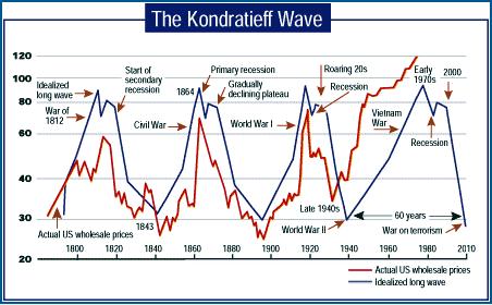 Sans doute aussi François Hollande est-il influencé par les théories économiques reposant sur la régularité historique de cycles comme la théorie de Kondratiev qui, analysant le développement du capitalisme a remarqué qu’après des phases de forte productivité et d’investissement, se produisait systématiquement des phases tendant à la décroissance, produisant des dévalorisations permettant au système de se relancer et d’accumuler de nouveaux des richesses, de réinvestir etc.