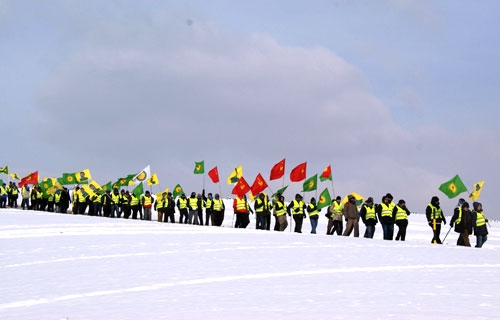 Parmi ces manifestants qui défient le froid se trouvent plusieurs personnes âgées de 60 à 70 ans, dont cinq femmes, mais aussi des chanteurs et écrivains kurdes, des représentants de diverses communautés religieuses comme Alevi, musulman ou Yezidi, deux maires kurdes, de Uludere et de Hakkari, des représentants des organisations de la gauche de Turquie.