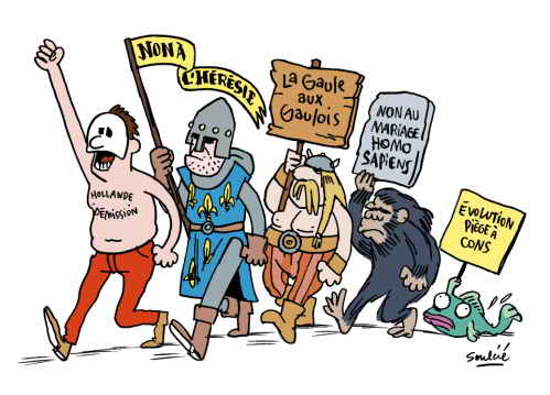 Dans cet esprit le vieux complot des élites judéo maçonniques pour pervertir les enfants et les convertir aux dites perversions citées ci-dessus est aujourd’hui de retour… Le problème avait déjà commencé en 2013 avec les manifestations contre le mariage homosexuel. Délires homophobes relayés par des membres importants de l’UMP :