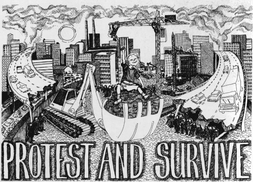 Sur les Road Protest, voir ce documentaire tout simplement génial sur la résistance à la construction d’un gigantesque échangeur routier, le M11, dans un quartier de Londres (si quelqu’un-e peut le sous titrer en Français, ce serait super !) :