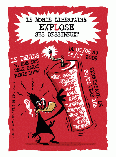 Exposition « Le Monde libertaire explose ses dessinateurs » au café Le Delyss, 5, rue des Deux- Gares
