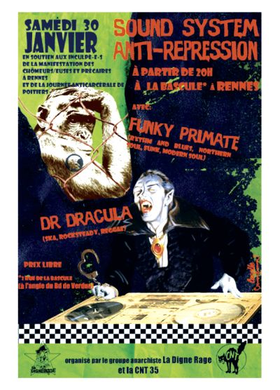 15 h 30. Place de la Mairie. Manifestation des chômeurs et précaires contre la répression policière. À l’appel entre autres de l’Union locale de Rennes de la Fédération anarchiste.