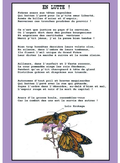 16 heures. Café libertaire organisé par le groupe Lairial. Dans une société libertaire, quelle place pour les enfants ? À disposition, table de presse de Matérial. Épicerie du Pré, 31, rue du Pré.