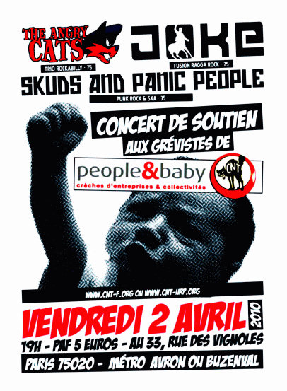 20 heures : soirée festive. Dîner et concert. Groupe invité : Bistro-Bistro. Organisé par le syndicat STE 35 (CNT). Chez Ramon et Pedro, 43, rue Duhamel.