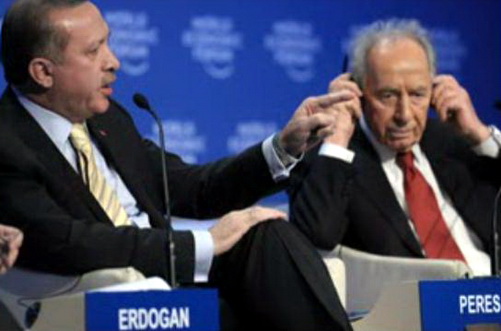 Lancé dans une plaidoirie en faveur de l’offensive menée récemment par l’armée israélienne dans la bande de Gaza, le président israélien Shimon Peres a demandé à Erdogan, en élevant la voix et en le pointant du doigt, comment il réagirait si des roquettes s’abattaient chaque nuit à Istanbul.