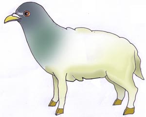 Un Pigeton est un animal qui a la tête d’un pigeon et le corps d’un mouton. Cet animal avale n’importe quoi et se laisse tondre sans réagir. Accessoirement, les Pigetons peuvent avoir des comportement collectifs, en étant capables de suivre un leader de la manière la plus irrationnelle, par millions. Entre deux phases d’une remarquable passivité, on peut trouver chez eux des accès de violence assimilables à des défoulements. En exploitant ce capital de violence latente on peut constituer des armées de Pigetons, de part et d’autre d’une frontière, derrière des bannières, et les amener à se combattre jusqu’à la mort avec le plus grand esprit de sacrifice. Lors de ces affrontements entre Pigetons de deux clans adverses, il n’est pas rare de voir des entreprises spécialisées fournir des armes aux deux camps, par souci d’équité.