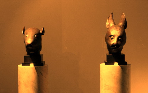 Les deux pièces, représentant une tête de rat et une tête de lapin d’une hauteur d’une quarantaine de centimètres, proviennent du sac du Palais d’été à Pékin par des soldats français et britanniques en 1860.