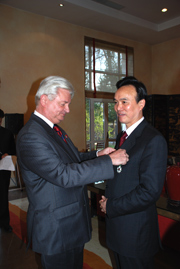 C’est pourtant lui que l’Ambassadeur de France, Hervé Ladsous, a fait le 3 avril dernier chevalier de la légion d’honneur. Dans une relative discrétion, certes, mais sans cachotterie non plus, puisque l’Ambassade, sur son site, publie des photos de la cérémonie, et l’allocution de l’ Ambassadeur. Aujourd’hui la Chine a constaté toutefois que la "Une" du site de l’Ambassade a été nettoyée après notre article, et aucune allusion à cette décoration n’y est plus visible désormais.