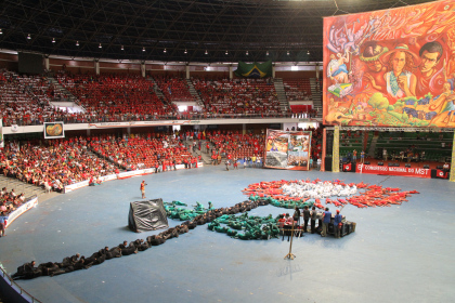15000 paysan(ne)s ont pris la route, aux quatre coins du Brésil pour rejoindre et organiser un immense campement à Brasilia. Du 10 au 14 février, le plus grand mouvement social du Brésil fait le bilan de trente années de luttes en présence de deux cents invités internationaux. Ce sixième Congrès national du Mouvement des travailleurs ruraux Sans Terre (MST) s’est ouvert par une "mistica" (photos) où la poésie, la musique, le théâtre se rejoignent pour réaffirmer la vision et la sensibilité du mouvement social.