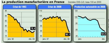 Le repli de la production industrielle est beaucoup plus violent que lors des précédente crises