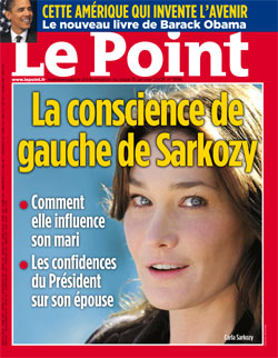 Carla Bruni-Sarkozy « conscience de gauche » de son Président de mari ? Le Point poursuit son introspection de la psyché sarkozyenne avec un nouveau filon : après la conscience de gauche, la conscience noire, la conscience arabe, et, bien sûr, de sa conscience de droite ? De beaux numéros en perspective !