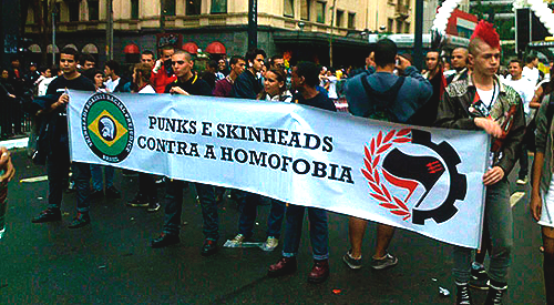 Banderole du RASH New-York (qui avait scissionné du SHARP pour fonder le RASH notamment sur la question de l’homophobie) |
