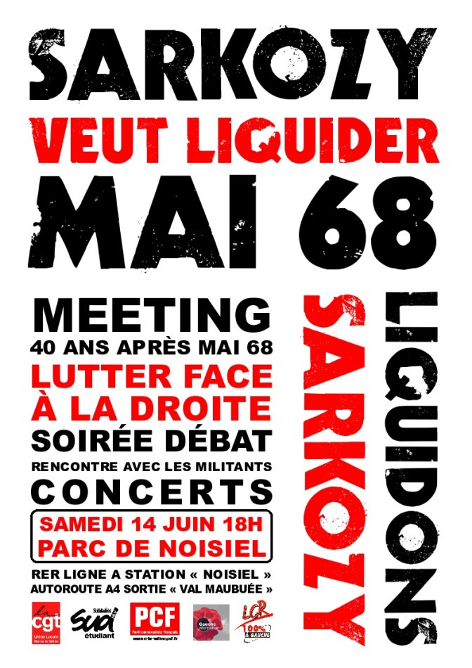 Quarante ans après mai 1968, la société est différente, ses souffrances sont les mêmes. Les organisateurs ont donc fait le choix d’une discussion centrée sur les difficultés actuelles, sur la politique de l’UMP et du MEDEF, sur les luttes d’aujourd’hui.