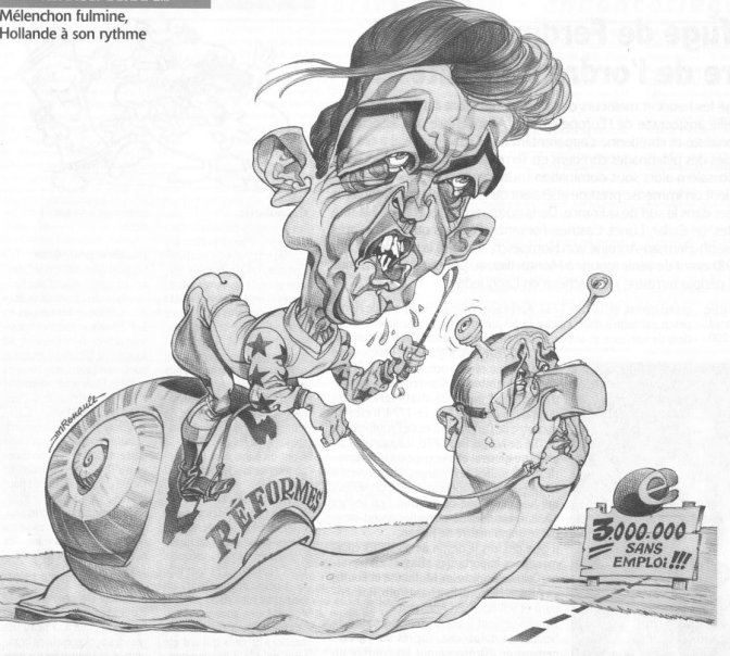En développant la métaphore de ce dessin de L’Agglorieuse, les militants du NPA pourraient s’adresser à Jean-Luc Mélenchon en ces termes : "Alors, Jean-Luc, tu descends une fois pour toutes de l’escargot social-libéral ? Cornaquer un tel gastéporode c’est mener à l’impasse politique les espoirs populaires de sortir des 3 millions de chômeurs officiels. "
