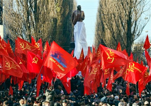 Les groupes d’ultras, dirigés par des forces ouvertement néo-nazis, ont émergé avec l’agrément du régime Ianoukovitch, et les héritiers idéologiques d’Hitler accompagnés par un nouveau régime mènent une résurgence de l’hystérie anti-communiste, qui se manifeste dans la destruction massive monuments à Lénine, aux héros de la Grande guerre patriotique, par attaques criminelles contre nos sièges à Kiev et dans d’autres villes du pays, ils appliquent une terreur morale et physique contre les communistes et tentent d’interdire les activités du Parti communiste par des agressions importantes.