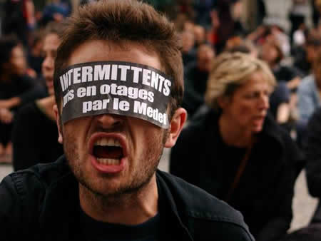 Fin juin mes amis intermittent ont appelé à la solidarité, le mouvement des retraites nous avait épuisé les collègues reprenaient le boulot, les prof faisaient passer les examen et moi je faisais des sittings avec les intermittents, mais à quoi bon, on a vu le résultat.