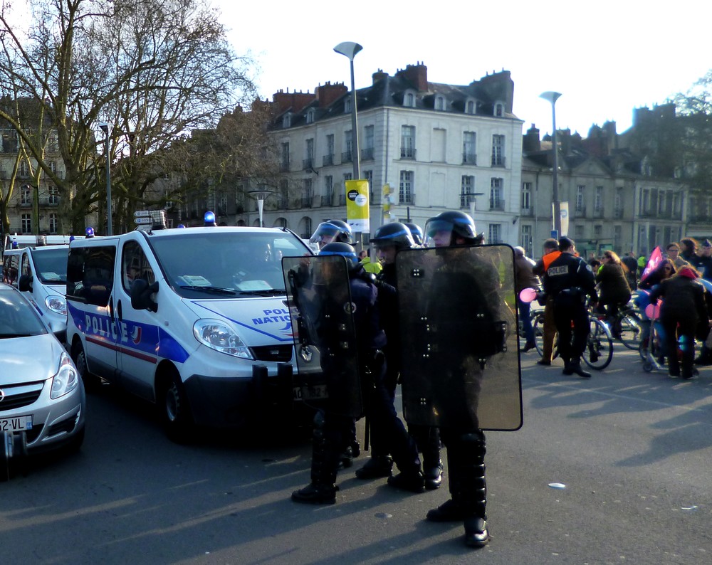 Deux cars de police arrivent en trombe, des flics descendent, visiblement survoltés : il s’agit de la sinistre Compagnie Départementale d’Intervention, coutumière des violences policières à Nantes.