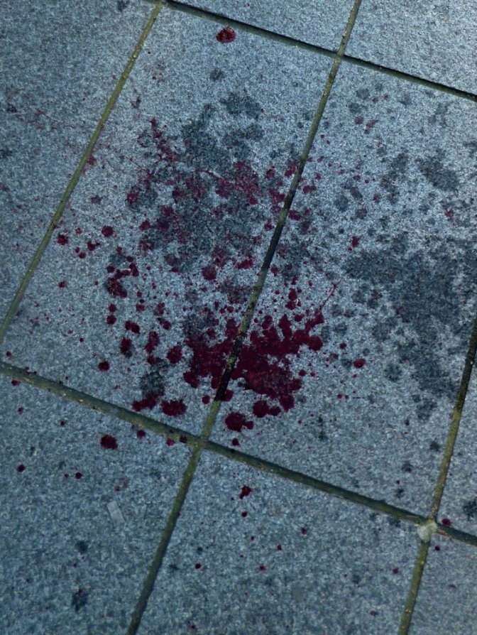 Les esprits sont secoués par les coups et les gaz , les larmes de source policière se mélangent à celles du deuil, une flaque de sang gît sur la dalle de béton.