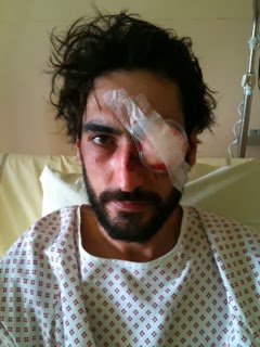 Quentin, 29 ans, charpentier, a perdu sa paupière et son oeil gauche. |