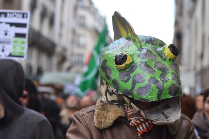 Nous avons suivi la manifestation de 13 h à 18 h et ce que nous avons vu était au début festif, puis moche, très moche même, mais pas forcément de la façon dont le relatent les médias principaux. Et ce n’est pas la première fois (cf. ce qui s’est passé les 24 et 25 Novembre 2012 sur la ZAD : Blessés à Notre Dames Des Landes, cet étrange silence médiatique).
