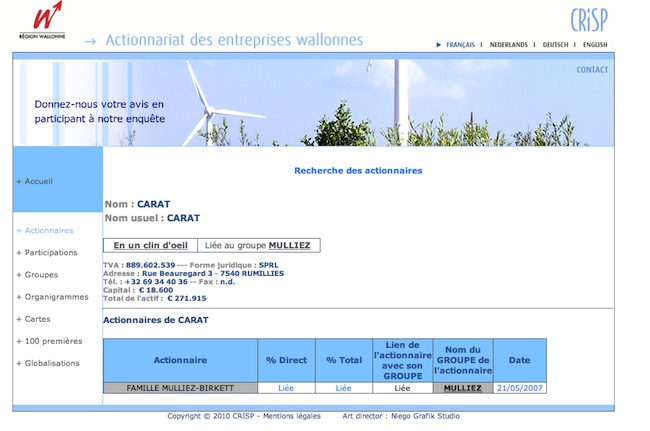 La Ste CARAT c’est Rue Beauregard 3 - 7540 RUMILLIES Belgique, une boite aux lettres fiscale.