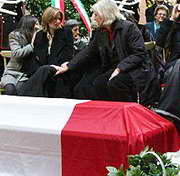 L’officier des services secrets italiens Nicola Calipari, tué vendredi en protégeant la journaliste Giuliana Sgrena, a été enterré en héros lundi à Rome. Le président de la République Carlo Azeglio Ciampi et Silvio Berlusconi, le chef du gouvernement, ainsi que les plus hauts responsables politiques du pays, ont assisté aux obsèques nationales en la basilique de Sainte Marie des Anges.
