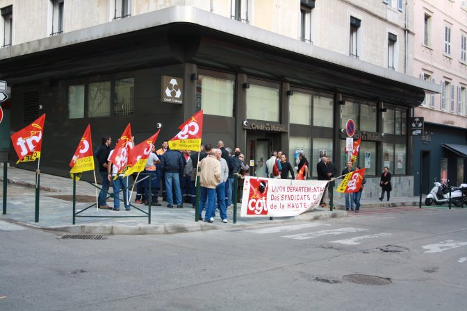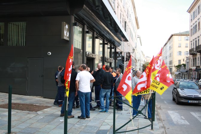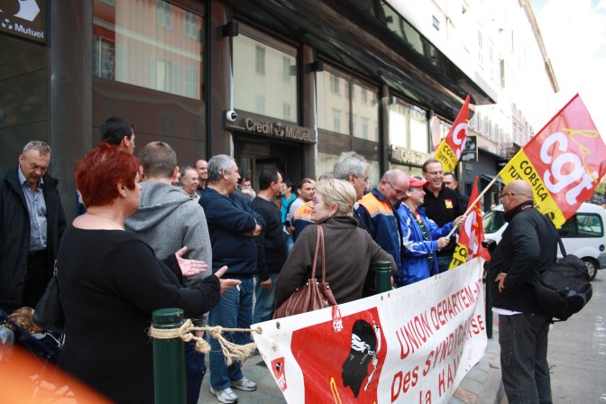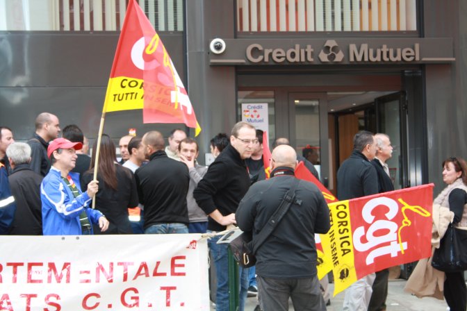 Depuis ce matin 9h30 le Crédit Mutuel de Bastia est occupé par les militants de l’UD CGT de Bastia auxquels se sont joints , par solidarité, des militants de tous horizons professionnels.