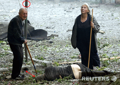 Publie le jeudi 28 août 2008 par Open-PublishingQuelques jours après que ces photos avaient été analysées par le blog russe Russia Inside Out et le blog serbe Byzantine blog comme des mises scène du photographe David Mdzinarishvili, certaines d’entre elles ont été tout smplement retirées du site web de Reuters. Voici la déconstruction faite par Byzantine blog.