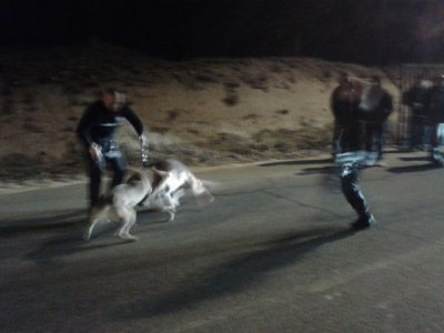 Après nous avoir enfermés en fermant les grilles d’accès au parking et en empêchant les travailleurs d’aller sur leurs lieux de travail, les gardiens, sortent les chiens. L’un d’entre eux s’échappe et attaque son congénère. Quelle chance, il aurait pu sauter a la gorge de l’un d’entre nous !!!
