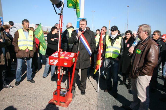 Jean-Paul Lecoq, député-maire PCF de Gonfreville l’Orcher, écharpe en bandoulière, a aussi été invité à s’exprimer. Il a insisté sur le fait que, derrière la réforme, ce sont tous les acquis sociaux qui seront mis à bas. Sécurité sociale comprise. « Le capital s’est servi sur le dos du monde du travail. C’est cet argent-là qui manque. C’est cet argent-là qui doit être réparti. Maintenant, Sarkozy ne supporte pas le droit de grève. Mais le mouvement que nous vivons est extraordinaire. Bien qu’il perturbe la vie quotidienne, il est soutenu par 70% des Français ! Les valeurs historiques de la France, ce sont les grévistes qui les défendent. La dignité est de votre côté. »
