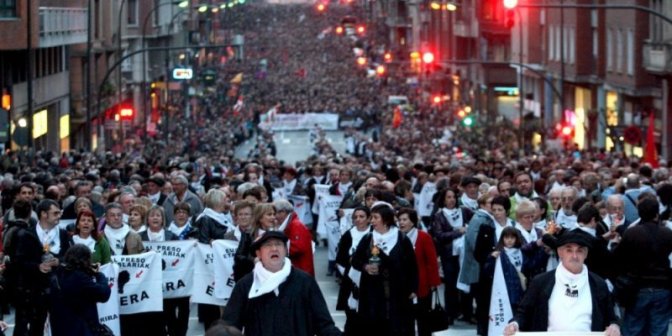 Il y a quelques mois, la justice avait ordonné la suspension des activités d’Herrira en raison de ses liens présumés avec ETA. Une rafle de la police contre des militants de Herrira, une fois de plus, avait précédée l’illégalisation de cette structure de soutien aux prisonniers politiques Depuis 2010, cette marche, qui a lieu chaque année à la même période. L’année dernière, elle avait rassemblé plus de 115 000 personnes. Avant 2010, ce genre de rassemblement était systématiquement interdit car organisé par les associations Askatasuna ou Gestoras proamnistía, interdits en Espagne depuis 2003 pour leurs liens présumés avec ETA. En ce qui concerne les militants et avocats basques arrêtés ce mercredi ils sont toujours en garde à vue à Madrid.