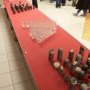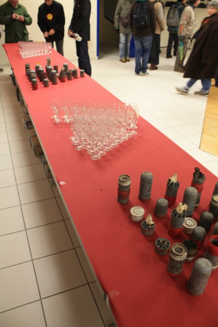 La seconde action de la journée était prévue à partir de 19 h, un rassemblement pacifique devant l’espace F. Mitterrand, en centre ville de Pont de Buis où devait se tenir une assemblée générale des élus socialistes du Finistère. Quelques nouvelles têtes rejoignèrent le premier cortège et la porte de la salle prévue étant ouverte, une grande partie des manifestants s’installa au premier étage, en effectuant une agréable re-décoration de la salle (voir photos) à base de divers produits NOBELSPORT ramassés sur la ZAD, afin que les élus puissent admirer la dangerosité de ces engins...