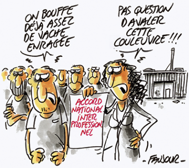 Mais celui-ci n’aurait pas été "négocié" si le gouvernement ne s’était dépêché avant l’application de nouvelles règles de représentativité : trois mois plus tard, et la signature CFDT+CGC+CFTC n’aurait plus suffi. Pas étonnant que la Parisot saute de joie.