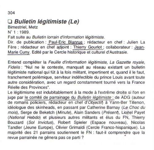 [16] Jean-Yves Camus et René Monzat « Les droites nationales et radicales en France » p304, Presses Universitaires de Lyon 1992 :