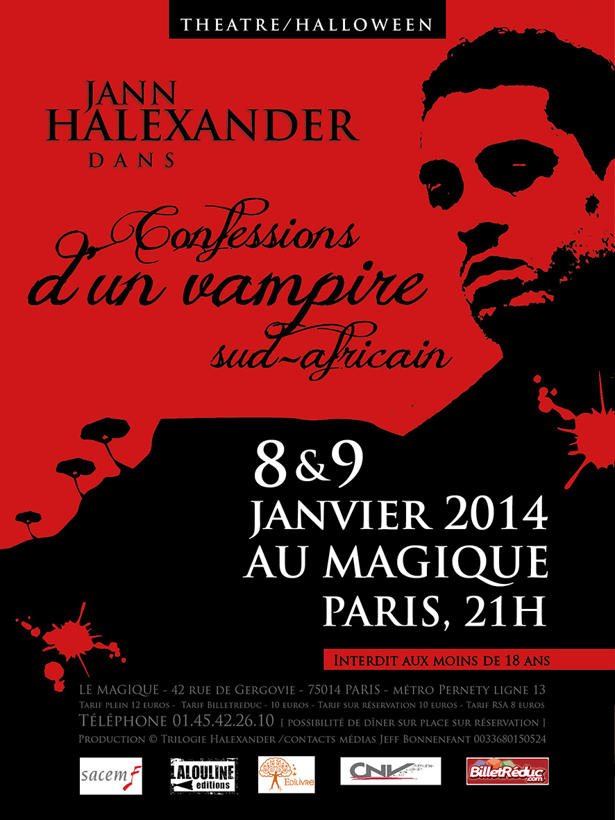 Publie le mercredi 11 décembre 2013 par De Montagu - Open-PublishingProlongations - Info Théâtre : monologue ’’Confessions d’un Vampire Sud-Africain’’, Paris 8 et 9 janvier 2014