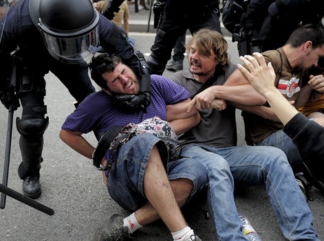 OPPRESSION , AGRESSION, INSULTES , BRUTALITE ...de qui parle HESSEL ? des MOSSOS ( la police catalane) ? NON il parle des indignés ...