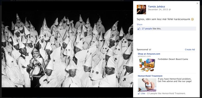 Des joyeux drilles du syndicat officiel de l’Université de Szeged (ce qui signifie qu’il est supporté et financé par l’état), ont décidé d’apporter leur soutien de manière assez cocasse hier à leur patron ayant publié sur sa page Facebook un jeu de mot raciste à propos de l’absence de neige à noël. Tradition que ces étudiants racistes respectent plus que tout car noël n’est pas une fête juive, ni bolchevique ni noire ni tsigane.