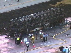 Selon la chaîne KXAS, citant un shérif local, "43 personnes étaient à bord du bus" et "la moitié d’entre elles ont péri" .../... (AFP)