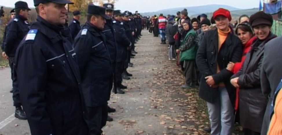 Dans un premier temps, les gens qui s’étaient réunis à Pungesti pour envoyer un message fort à Chevron et au gouvernement roumain, qui a tout fait pour imposer le projet de fracturation hydraulique de Chevron, ont fait tomber en l’arrachant la clôture entourant le terrain - où Chevron a commencé à ériger sa première plate-forme sur le territoire roumain de manière abusive et malgré la très forte opposition locale. Vingt personnes ont été arrêtées, d’autres blessées dans les échauffourées qui ont suivi ces arrestations, en particulier lors de tentatives de libération des personnes arrêtées sans ménagement : http://youtu.be/-Qnznd_5hiw