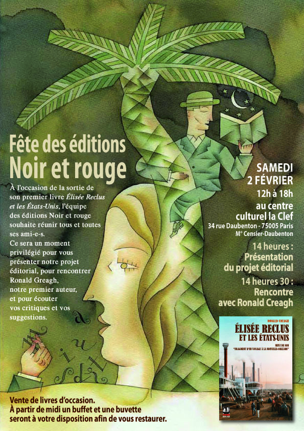 Publie le dimanche 27 janvier 2013 par Open-PublishingÀ l’occasion de la sortie de son premier livre Élisée Reclus et les États-Unis, l’équipe des éditions Noir et Rouge souhaite réunir tous et toutes ses ami-e-s.