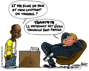 Mais, au delà de son travail en direction de la jeunesse, Fañch est aussi un homme à la sensibilité politique et sociale bien marquée. Plusieurs fois par semain, il brosse en quelques traits un fait marquant de l’actualité et publie son dessin, toujours drôle, parfois acerbe, sur son blog. Dimanche dernier, il s’intéressait aux nouvelles vertus écologiques du patronat et aux sans-papiers. Le 5 novembre, il évoquait la taxation des indemnités d’accident du travail....