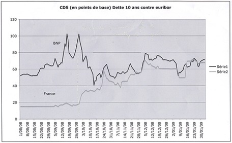 2°) Au-delà de ce calcul comptable, on pourrait montrer qu les prêts consentis par l’Etat aux banques affaiblit considérablement la crédibilité du pays. Autrement dit, en prêtant aux banques, l’état transfère le risque, ce que les marché sanctionnent immédiatement en augmentant le taux auquel la France peut emprunter.